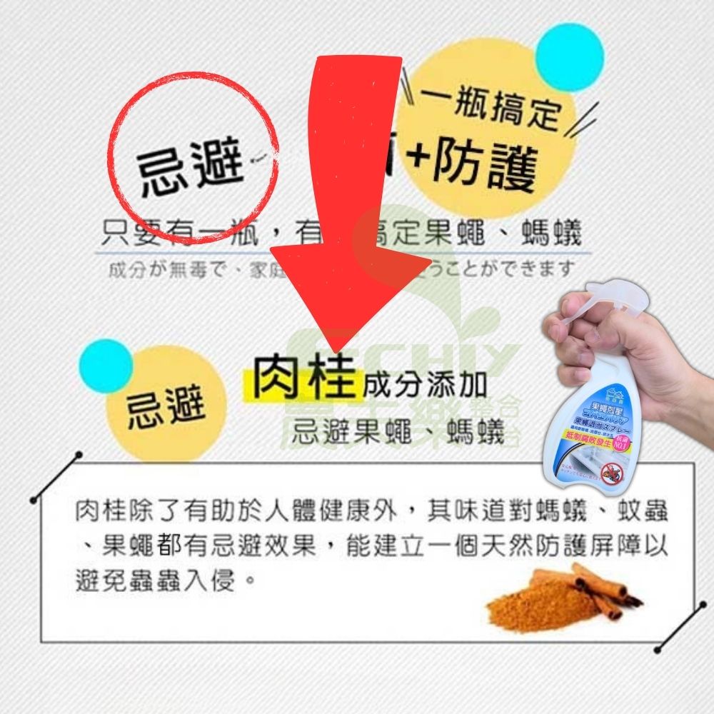 含肉桂及銀離子成分。只要輕鬆噴灑於流裡台、排水口、濾網、廚餘桶或垃圾桶上,