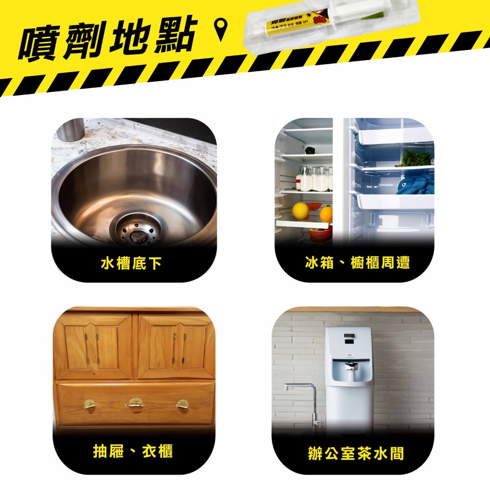 4.餌膠不可施用於潮溼處,避免水分接觸餌膠,以免影響防治效果。