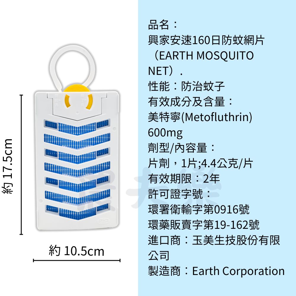- 品名:興家安速160日防蚊網片(EARTH MOSQUITO NET)