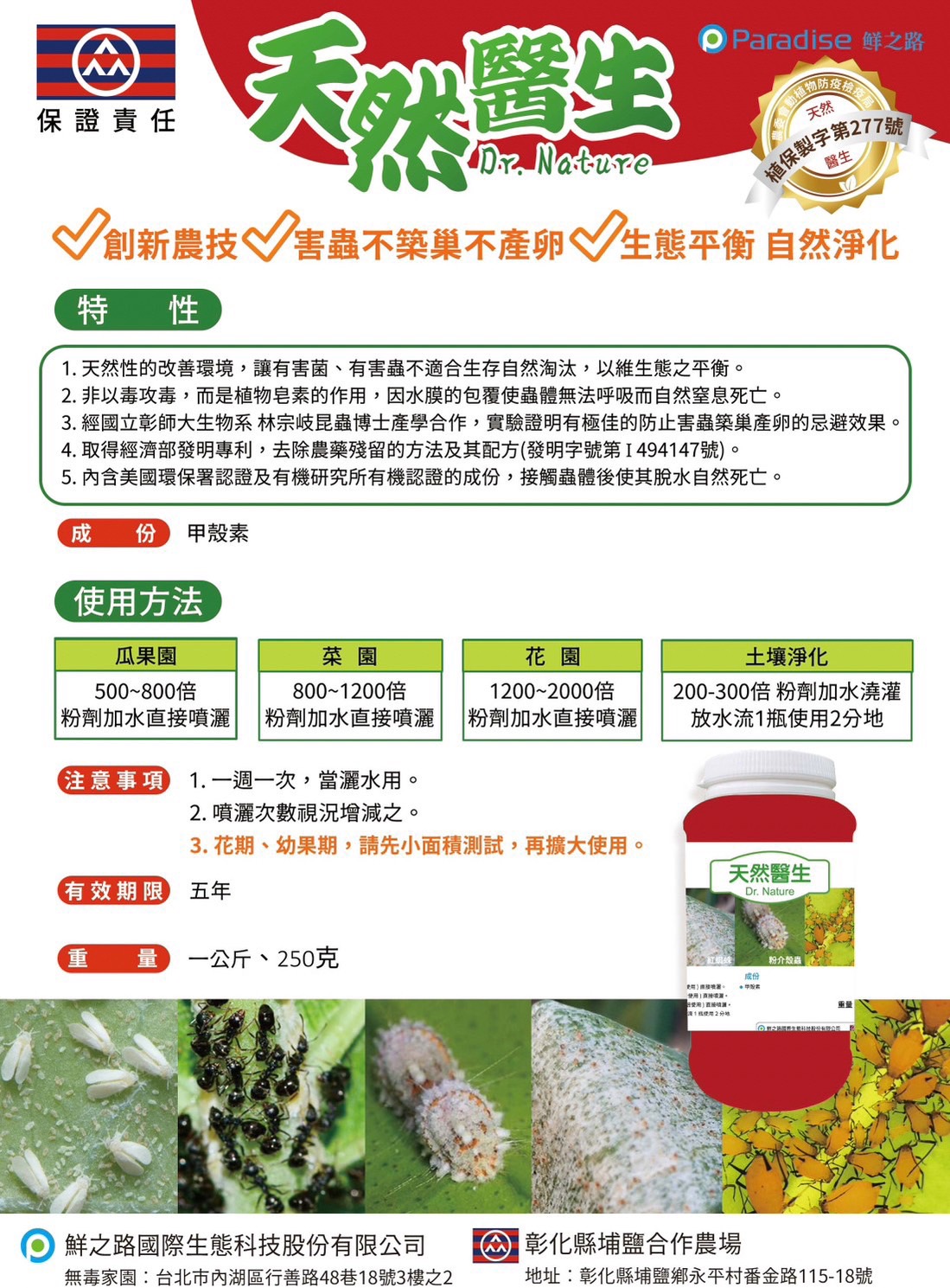 - 非以毒攻毒之化學觸殺,而是植物皂素的作用,因水膜的包覆使蟲體無法呼吸而自然窒息死亡