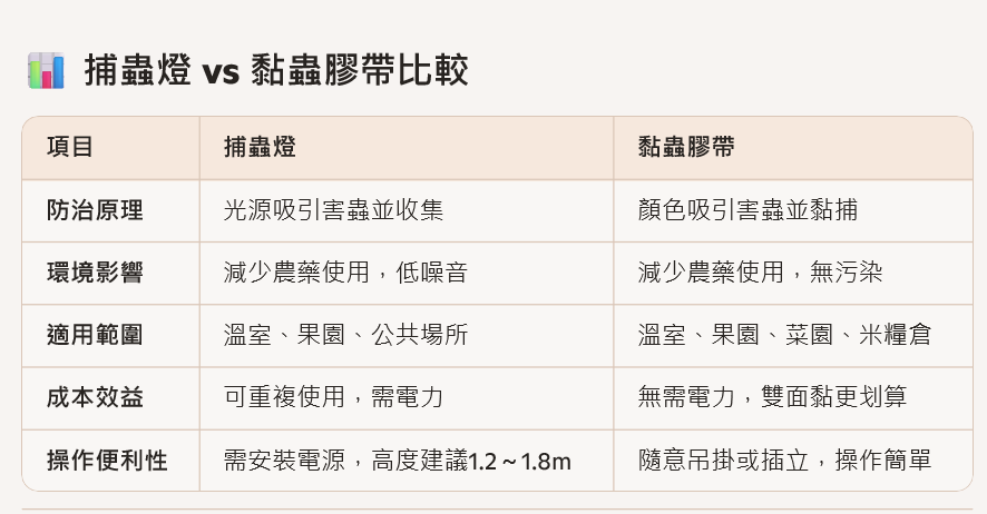 - 建議搭配其他物理防治方式,提升整體防治效率。