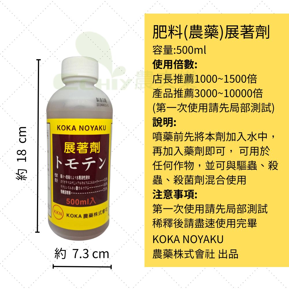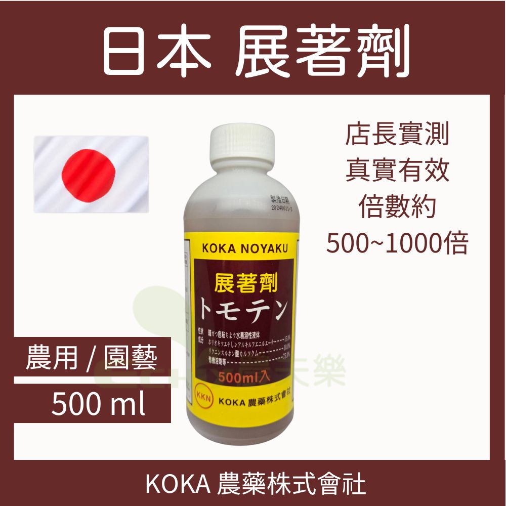 KOKA NOYAKU 展著劑 可增加濕展性、展著性、固著性、滲透性等功用,能增強 液體肥料、農藥 效果的加強劑。