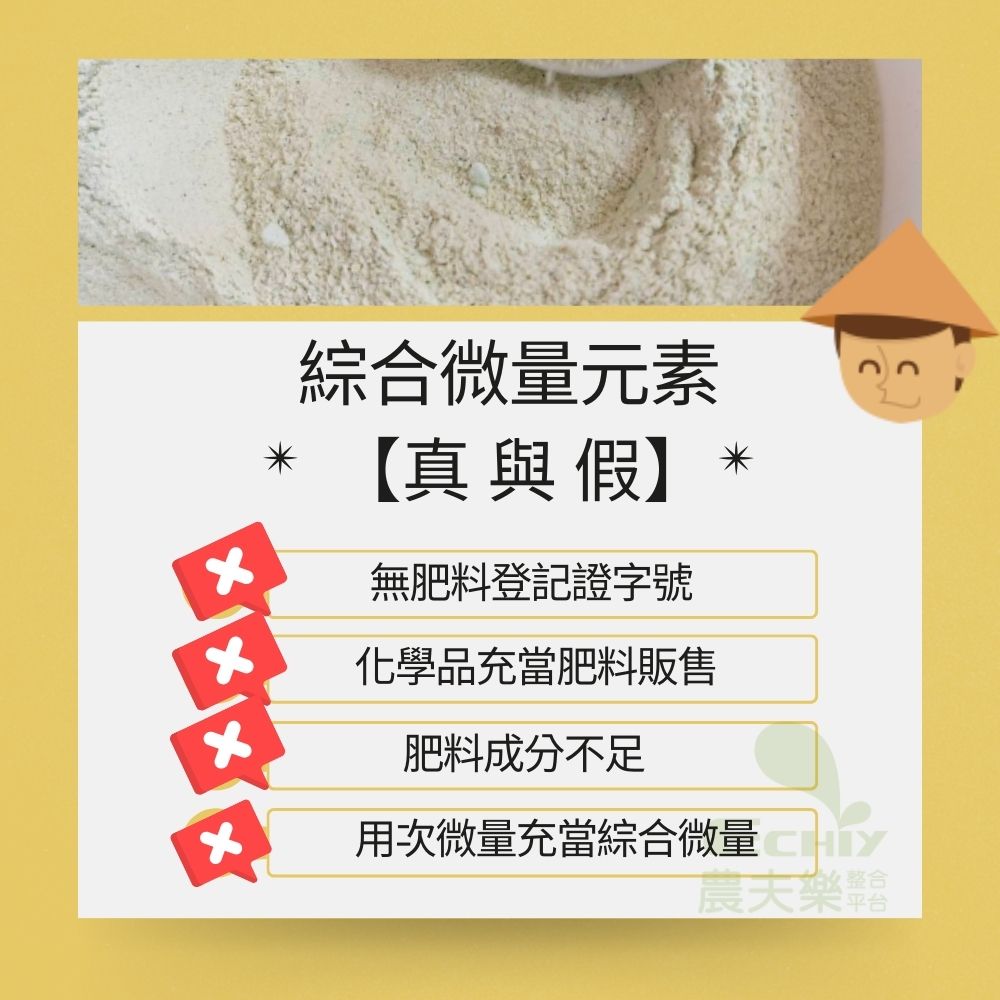 原料包含硫酸鎂、硫酸亞鐵、硫酸錳、硫酸銅、硫酸鋅、硼酸鈉、鉬酸銨,品質穩定,溶解迅速,確保作物能即時吸收。登記字號:製微0498025,品目名稱:4-41 雜項次量微量要素肥料。