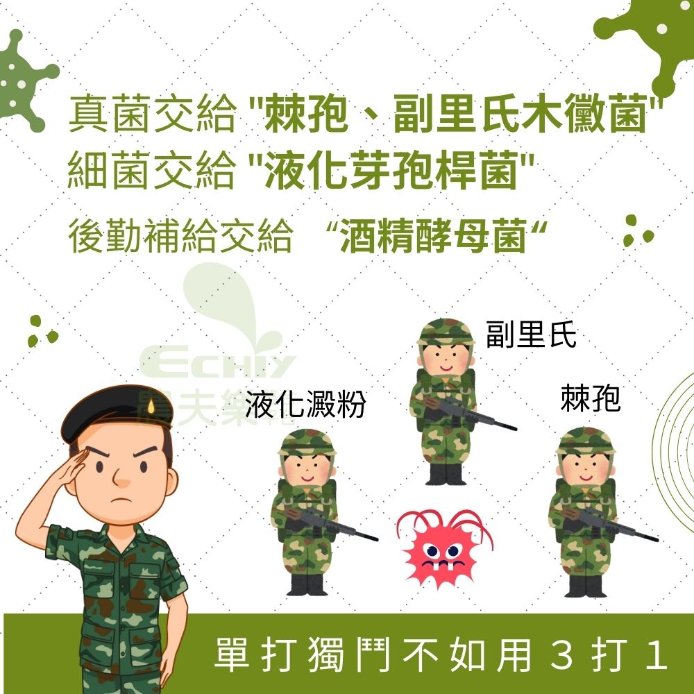 1.液化澱粉芽胞桿菌【細菌】,Bacillus amyloliquefaciens,間性好氧,強勢、液態澆灌首選