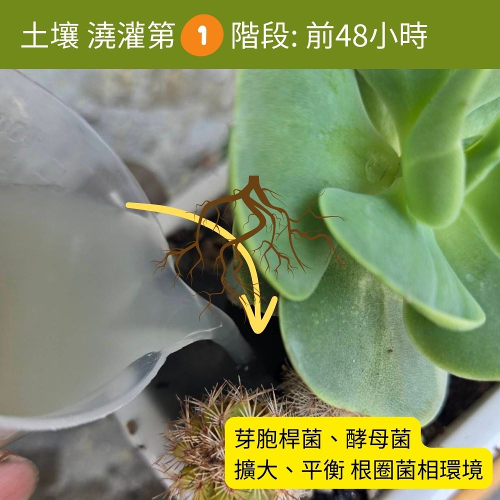1.澆灌土壤稀釋300倍,可加入液體總重的百分之3~10 碳源(砂糖、糖蜜),活化菌粉一晚