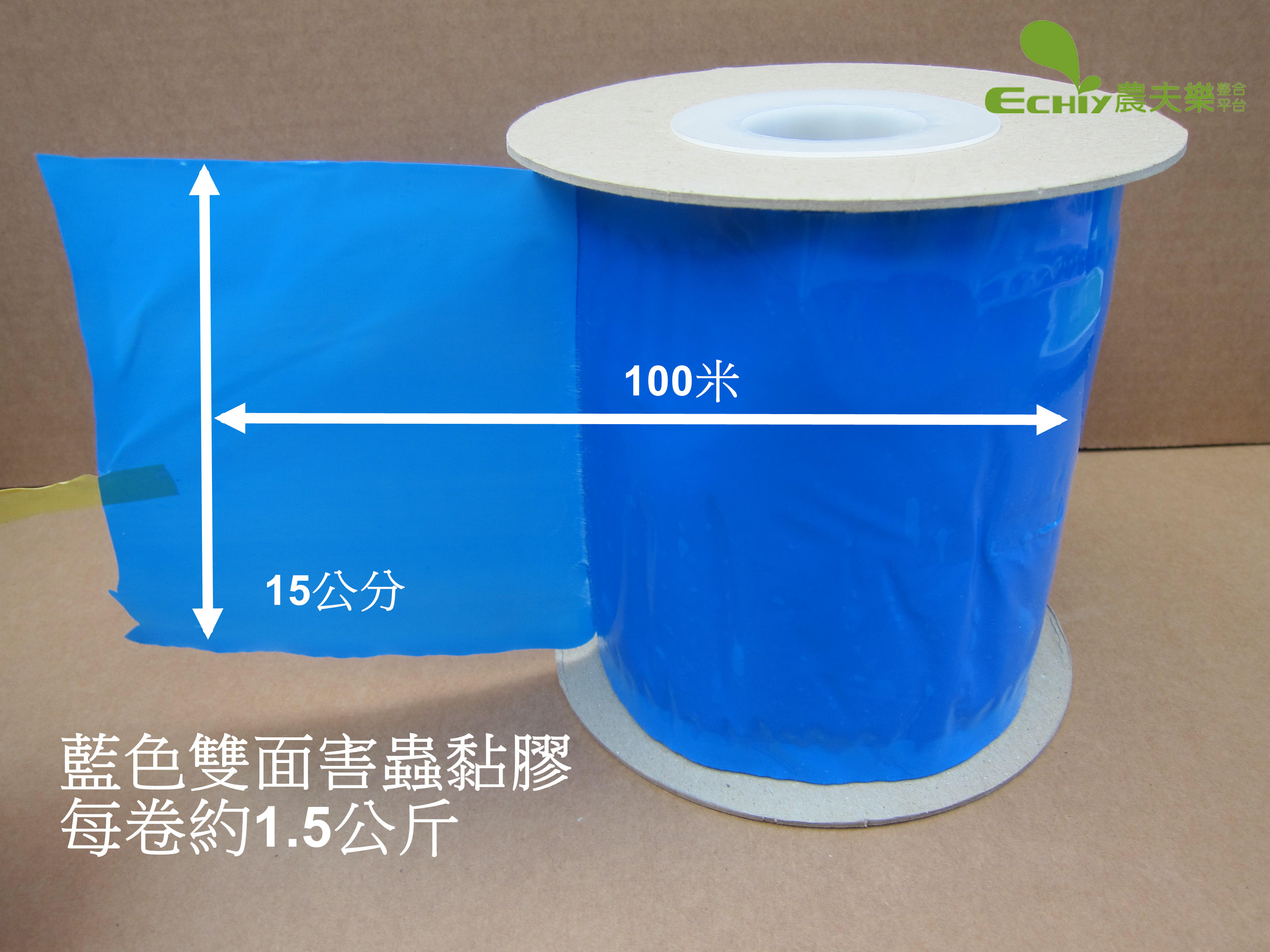 本產品超過2個無法超商取貨付款農夫樂100米無限長害蟲藍色誘引黏膠帶雙面黏膠帶100米當200米用!!< 藍色誘蟲100米黏膠帶使用說明書藍色跟黃色除了顏色不同外,重量、尺寸都一樣想黏哪就黏哪1.國外溫室普遍使用的產品。2.利用強烈的藍色誘捕,有效降低薊馬 等特定害蟲3.經濟划算,100米長<雙面黏>二、產品特性:1.機械塗佈、均勻衛生2.不怕日曬雨淋、有效期長3.蟲類不會產生抗葯性三、用途:利用某些昆蟲之趨色特性,將膠成薄狀、塗佈於藍色膠卷上,以圓筒型吊置或插立於作物園內,藉以誘補薊馬等害蟲,使其後代族群逐漸減少,而降低該等害蟲之危害程度,亦可減少農葯使用次數,降低作物農藥殘毒使用注意事項:可在農葯失效之空檔期讓誘蟲紙發揮防治之功能。